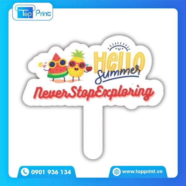 Sử dụng mực dầu / Mực UV: Đây là điểm mấu chốt đối với các sản phẩm dùng ngoài trời. Mực in chất lượng cao có khả năng chống phai màu dưới ánh nắng gắt và hoàn toàn kháng nước, giúp bạn thoải mái mang hashtag ra bãi biển hay hồ bơi mà không sợ lem mực.