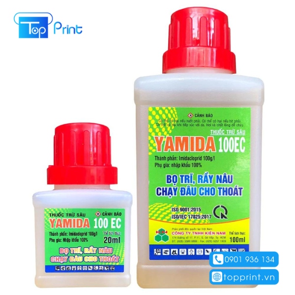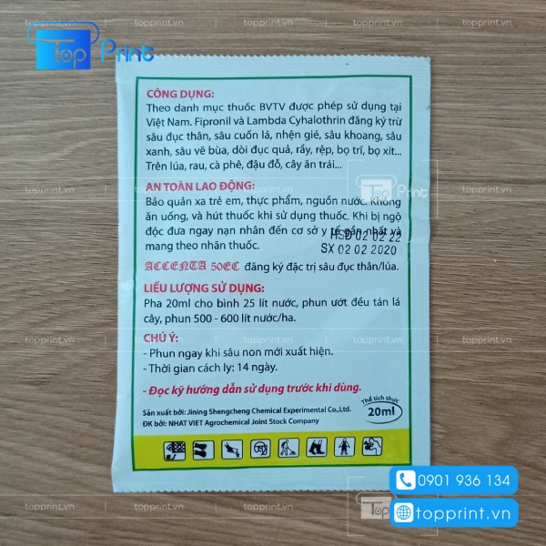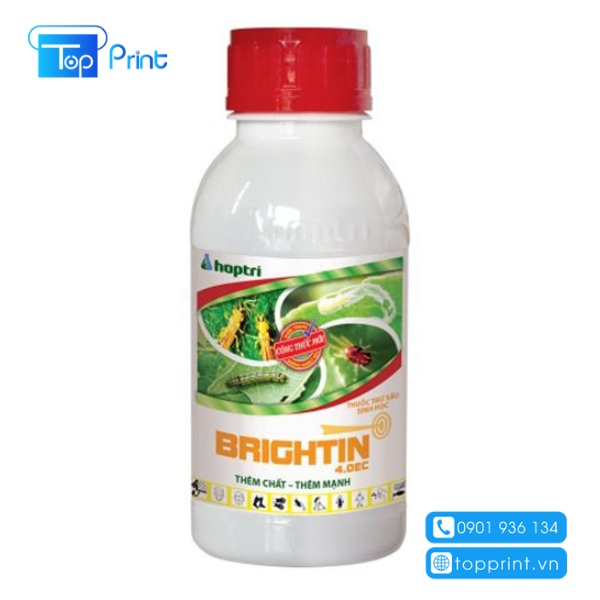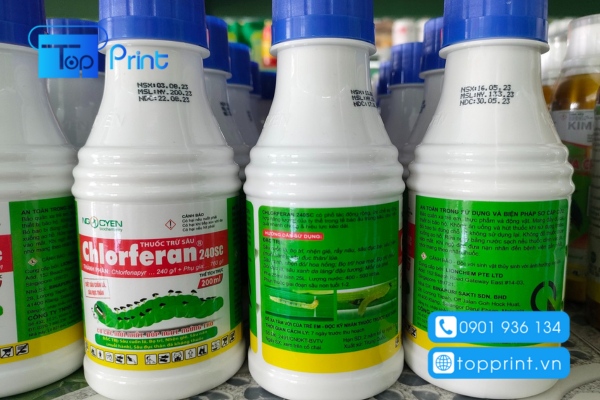 Topprint là đơn vị chuyên in nhãn mác sản phẩm thuốc bảo vệ thực vật đúng quy định đang được các đơn vị sản xuất thuốc trừ sâu lựa chọn sử dụng. Với việc sở hữu một quy trình sản xuất khép kín cùng công nghệ kỹ thuật cao, công nghệ in ấn hiện đại đảm bảo các sản phẩm nhãn mác luôn bền, đẹp, sắc nét và giúp khách hàng chú ý tới những thông tin cần thiết được in trên tem nhãn của sản phẩm thuốc trừ sâu.
