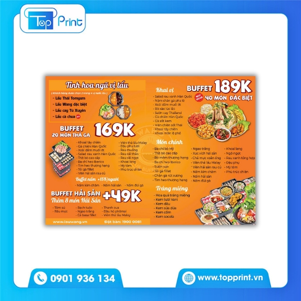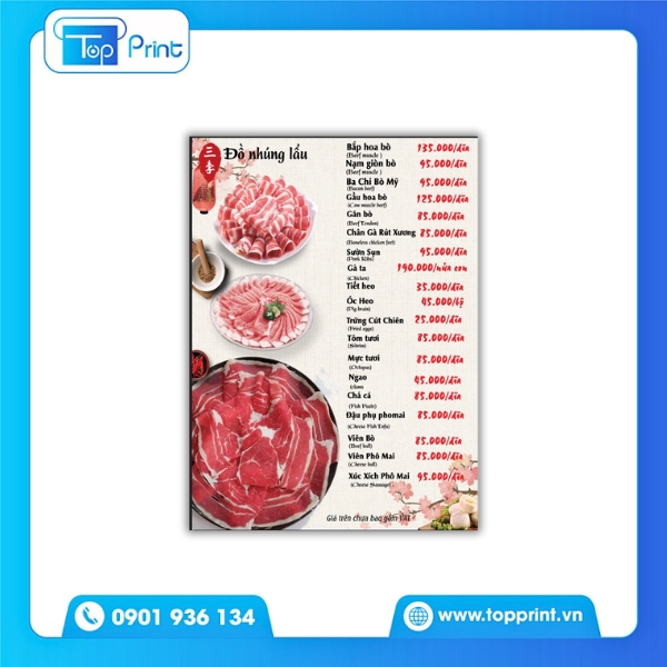 Topprint in menu lẩu chống dầu mỡ, chống thấm