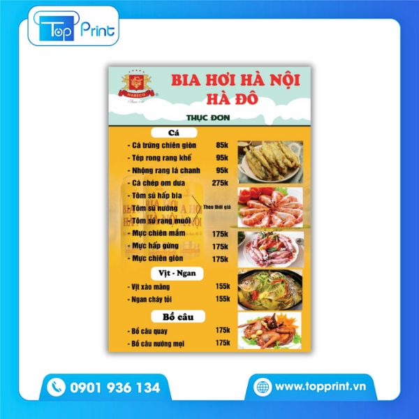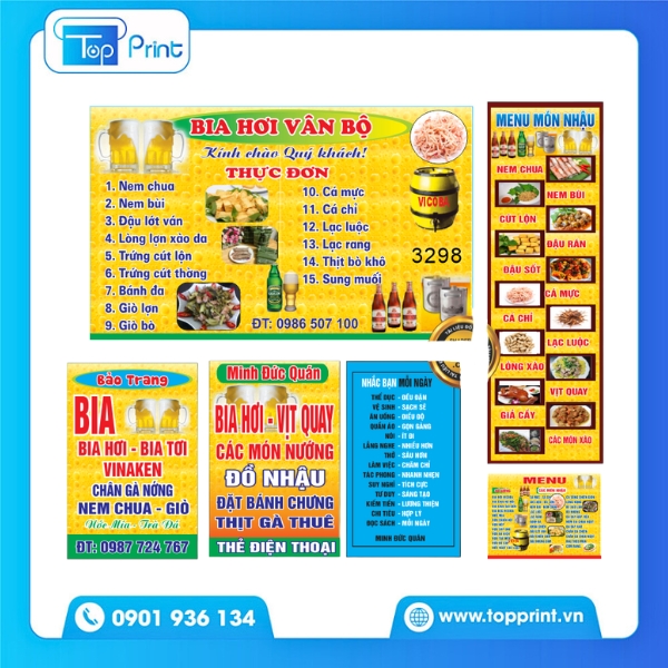 Nếu bạn đang tìm đơn vị thiết kế – in ấn menu quán bia hơi chất lượng, giá tốt, hãy liên hệ ngay với Topprint để được tư vấn chi tiết và nhận những mẫu thiết kế độc quyền, sáng tạo nhất cho quán của bạn!