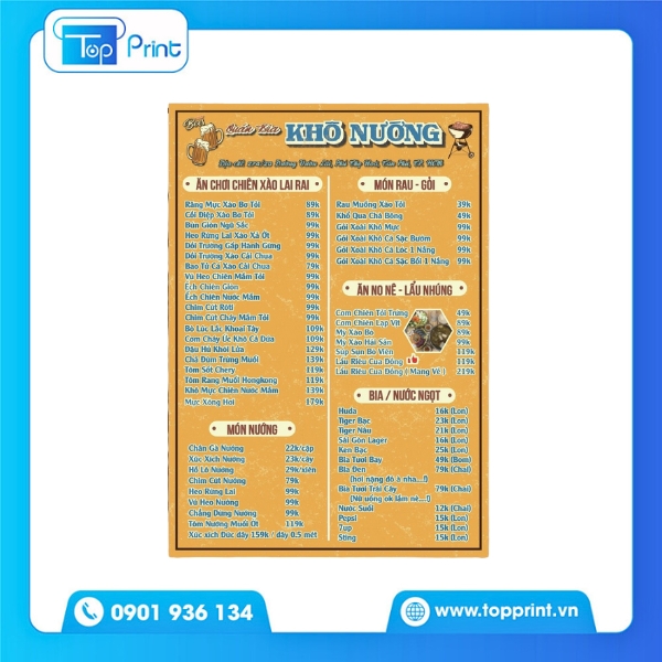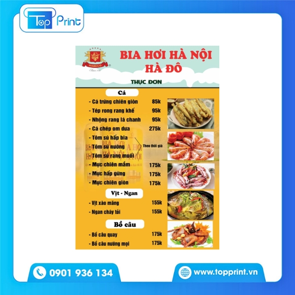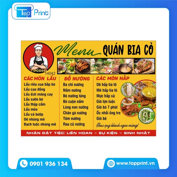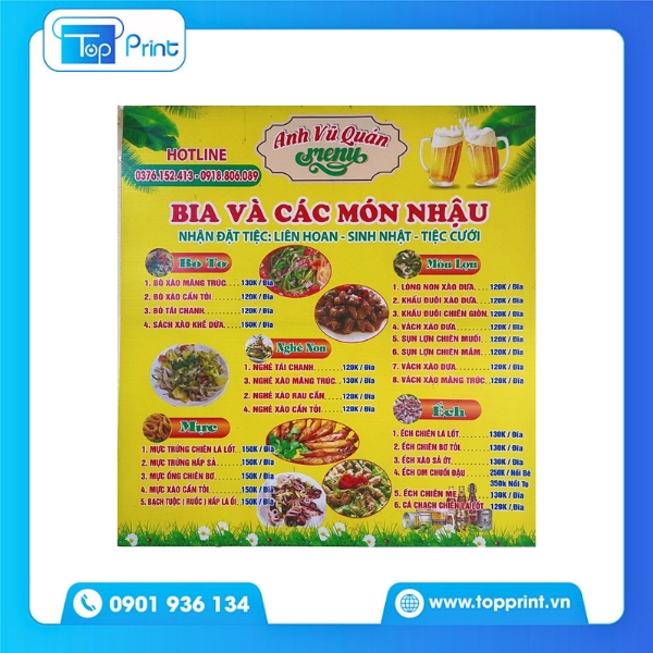 Menu quán nhậu in ấn giá rẻ, chất lượng cao tại Topprint
