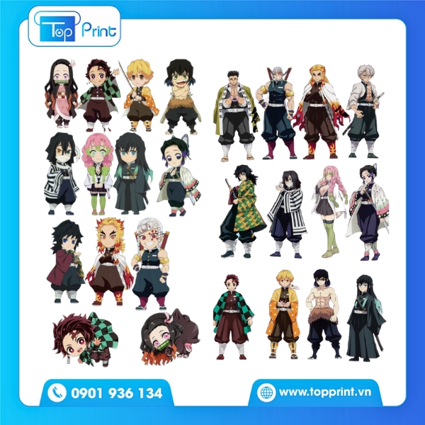 TopPrint nhận in sticker anime theo nhiều kích thước, từ mini đến khổ lớn: