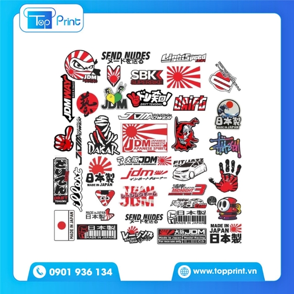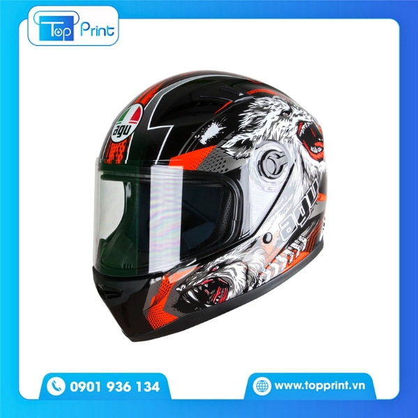 Tại Topprint, toàn bộ sticker dán mũ bảo hiểm đều được in bằng công nghệ in UV – in decal kỹ thuật số: