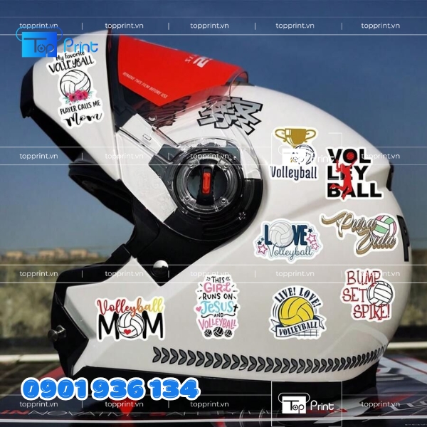 Sticker dán mũ bảo hiểm in theo yêu cầu tại Topprint