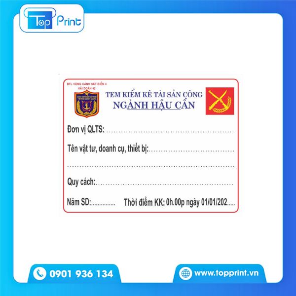 Mẫu tem kiểm kê tài sản do TopPrint thiết kế