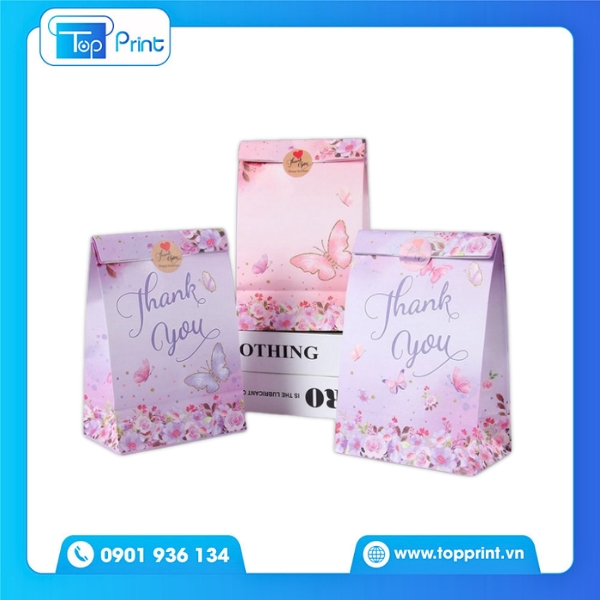 Tại Topprint, chúng tôi cung cấp dịch vụ in ấn túi giấy "Thank You" chất lượng cao, giúp thương hiệu của bạn thể hiện sự trân trọng và tạo ấn tượng mạnh mẽ với khách hàng.
