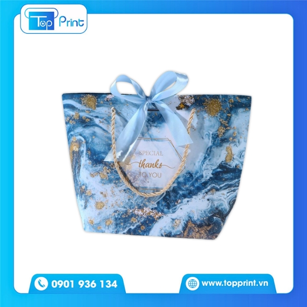 Túi Giấy Thank You Vân Đá Xanh Dương